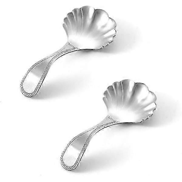 2 stainless steel coffee spoons; creative seashell coffee spoons; coffee beans; tea; sugar.