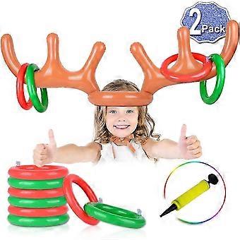 2 Set Inflatable Reindeer Antler Game With Rings, Christmas Party Game Headband Inflatable Toys For Kids