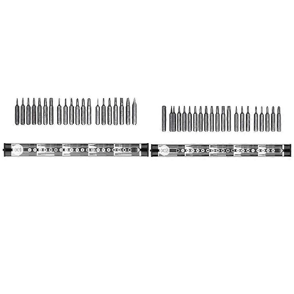 Description: This is the original 1F pro electric screwdriver bit set with X1(20pcs), X2(20pcs) model can be selected, Fit for XIAO series screwdrivers, and other brands screwdrives etc. The Screwdriver Bit Set includes Phillips, Slotted,Hex, Trox, 5-point, Y-type, Square, Triangle, Square, U-type to compatible with most electronical devices. Screwing, drilling and threading muti-function, meetiing your different woring demands. 4mm (1/8") hex shank also compatible with most other precison screwdriver set. 4x28mm screw bits size, meet different needs for repairing job. Made from S2 alloy steel with high hardness, strong wear resistance. Specification: Material: S2 Alloy Steel Shank Size: 4mm (1/8 inch) Length: 28mm Screwdriver Bit Model: X1(20PCS): PH0000,PH000,PH00,PHO,PH1,PH2,SL1.0,SL1.5,SL2.0,SL2.5,SL3.0,SL3.5,SL4,H0.7,H0.9,H1.3,H1.5,H2.0,H2.5,H3.0 X2(20PCS): H4.0,T2,T3,T4,T5,T6,T7,T8,T9,T10,T15,T20,P2,P5,P6,Y0.6,Y1.0,Y2.0,Y2.5,Y3.0 Package Includes: 2 Sets X1/X2 Screw Bits Set Note: 1. Color might be slightly different due to the color calibration of each individual monitor 2. Please allow slightly measuring deviation due to manual measurement