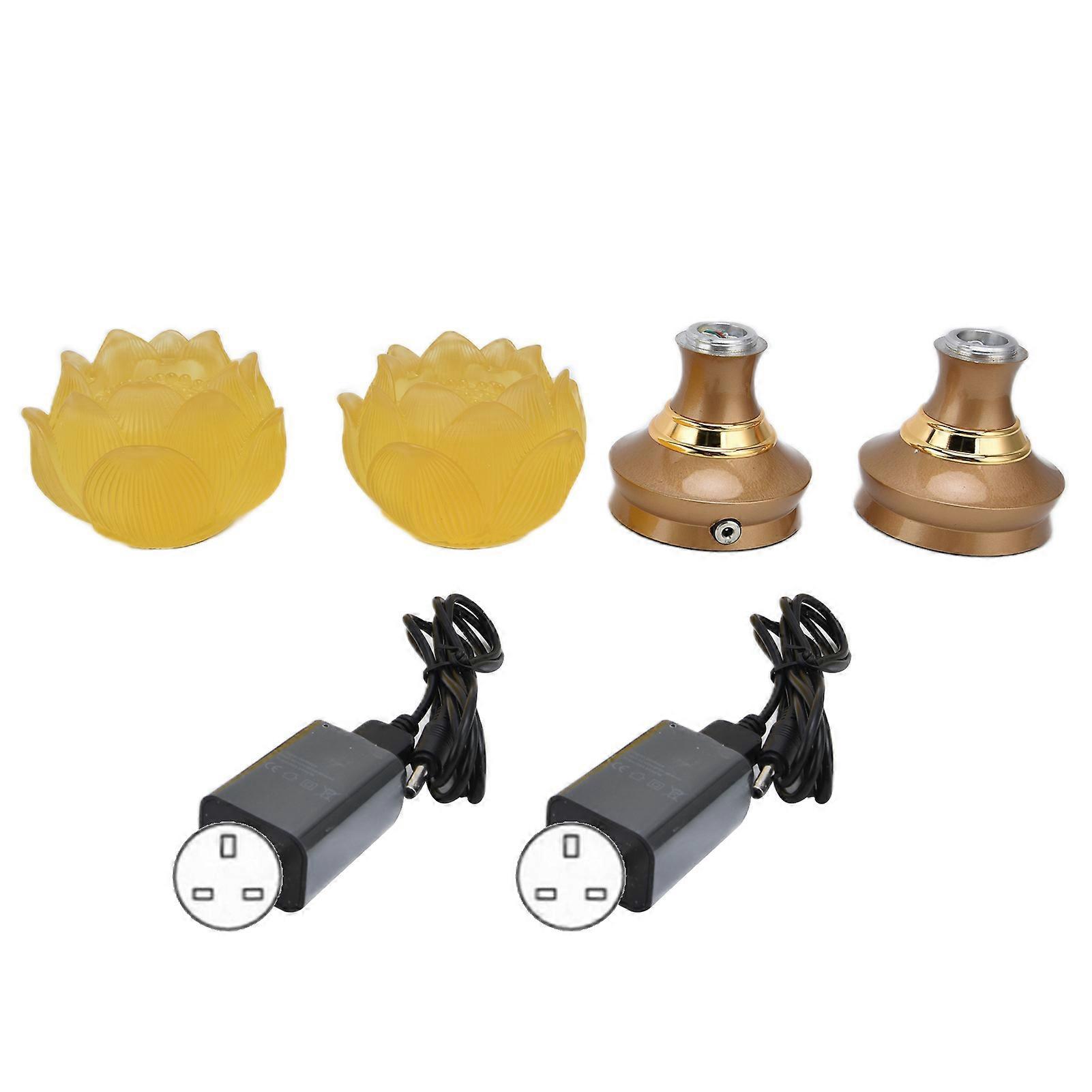 2Set LED Lotus Buddhist Light with Alloy Base Colorful Buddha Lamp Ornament Prayer Faith Supplies 100240V