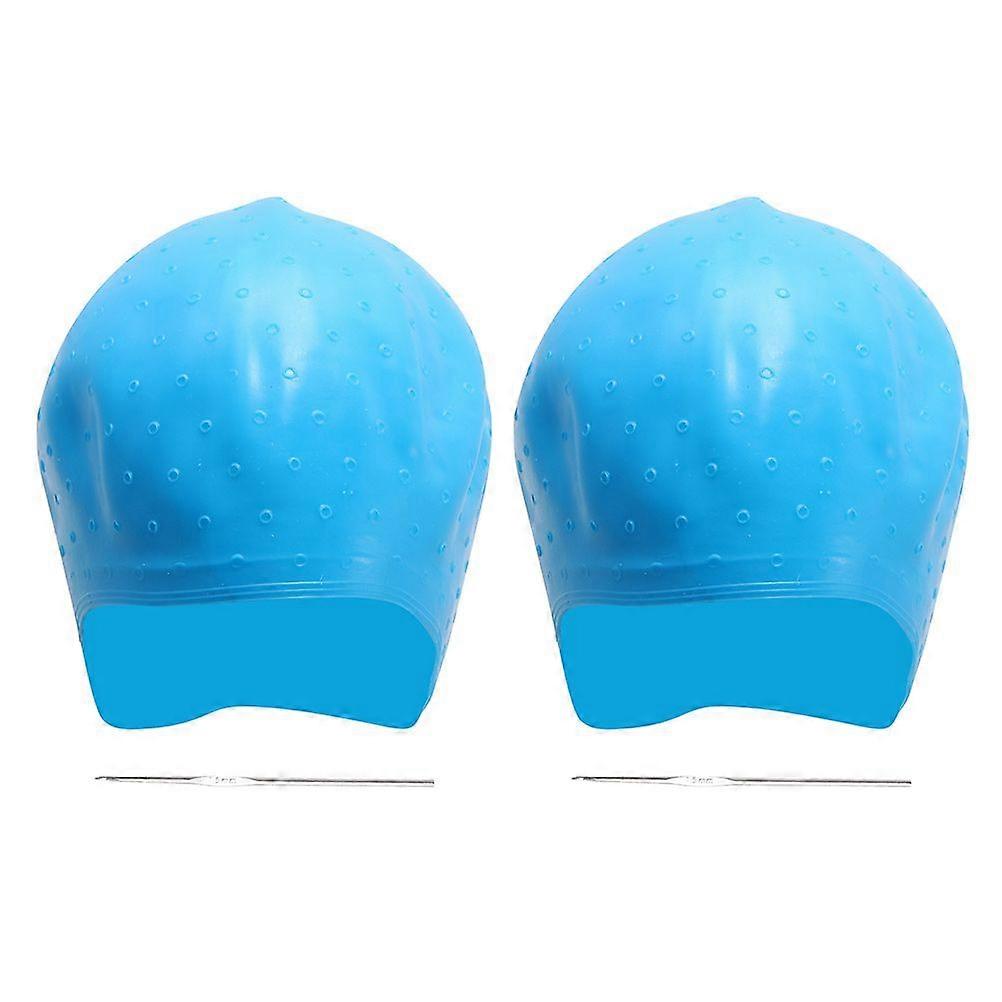 2 Sets Reusable Silicone Hair Coloring Caps Hair Dyeing Caps with Crochet Hooks