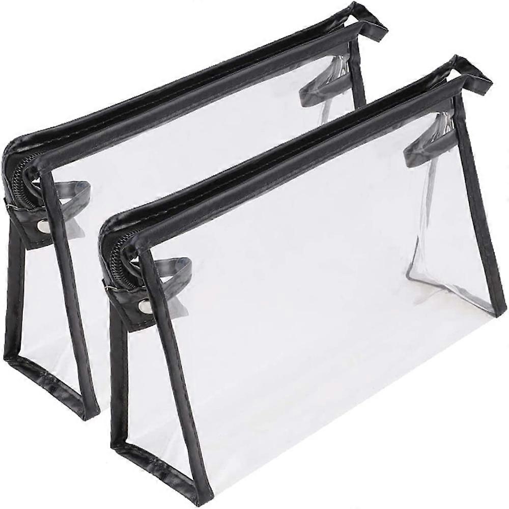 2 Stck Kosmetiktasche Transparent, PVC wasserdichte Kulturbeutel, Ideal fr Flssigkeiten Beutel Handgepck, Transparente Kosmetiktasche mit Schwarzem Ra