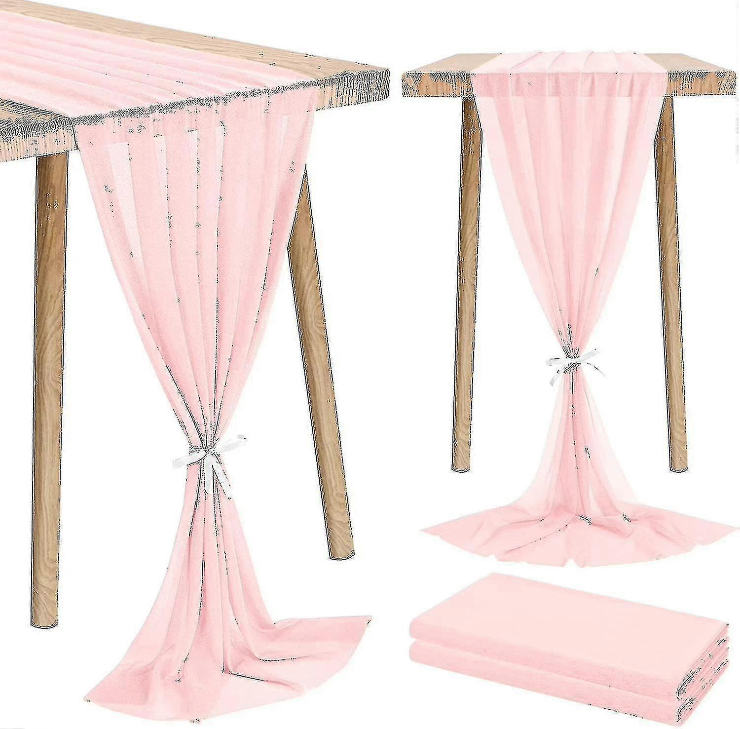 2 Pack Blush Pink Chiffon Table Runner 28x120 Inches Romantic Wedding Table Gift Y -t