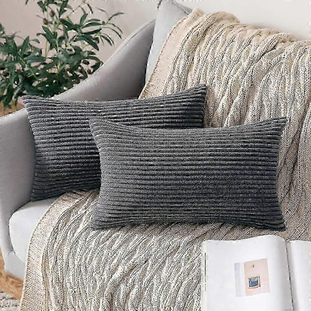 2 Pack Grey Corduroy Lumbar Pillow Covers 12x20 Inch for Sofa Bed Couch