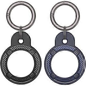 2 Pack Protective Case for Airtag Finder with Matte Finish Metal Keychain Ring Compatible Holder for Apple Air Tag (Black+Blue)