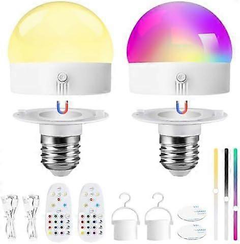 2 Pack Rechargeable Light Bulb with Remote Control E27 Battery Light Bulb, Dimmable RGB LED Bulb with 12 Color+3 Temperatures, Detachable Design, for