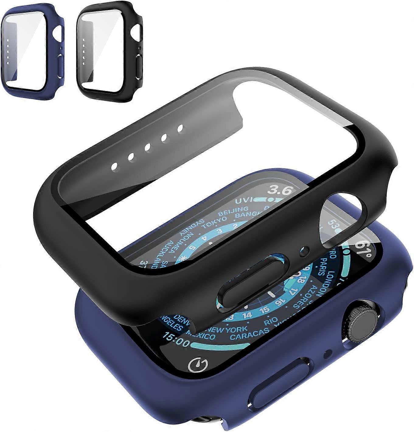 [2 Pack] Case Compatible for Apple Watch Series 8 7 45mm with Tempered Glass Screen Protector, Shockproof Ultra-Thin Hard PC Case All-Around Edge Prot
