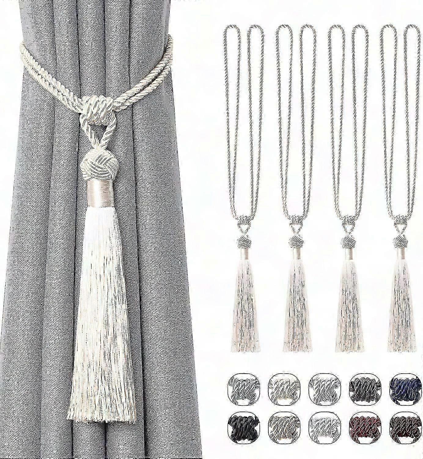 2 Pack European Style Handmade Braided Rope Knot Long Tassel Curtain Tiebacks for Home & Office