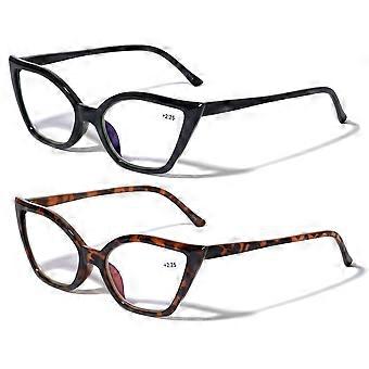 2 Pairs Women Pointed Tip Cat Eye Anti-Blue Reading Glasses - Clear Lens UV Protection Computer Readers +2.25