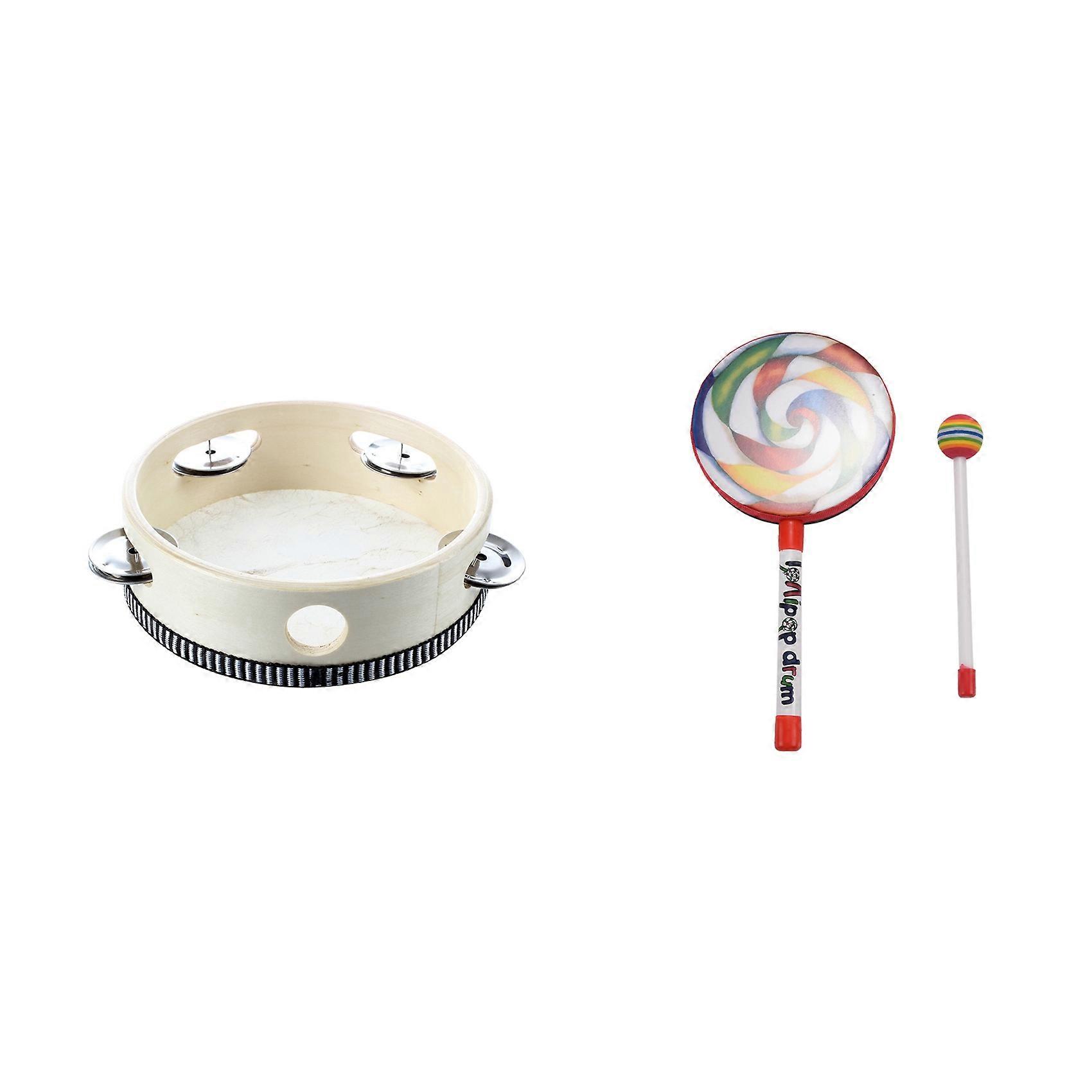 2 Pcs 6 Inch Musical Tambourine Tamborine Drum Round Percussion Gift