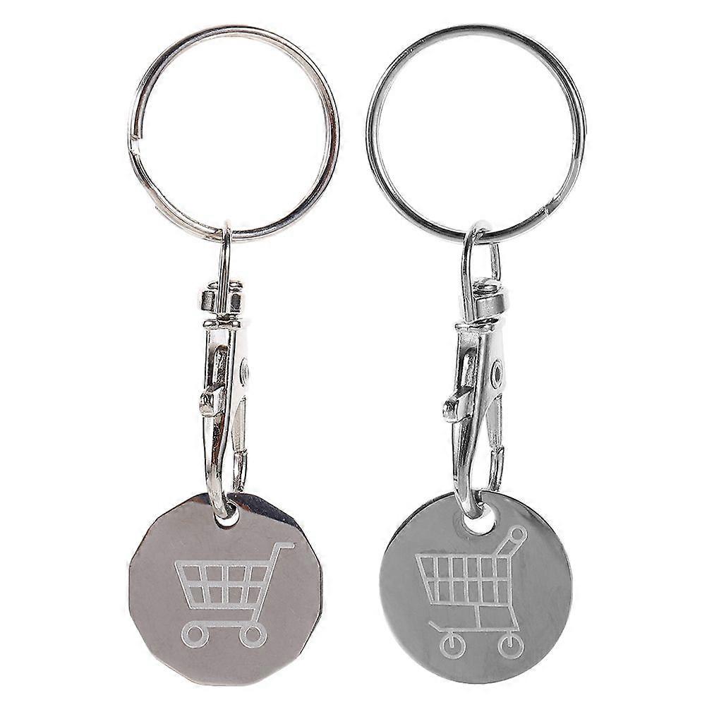 2pcs Stainless Steel Classic Style Trolley Keychain Supermarket Shopping Cart Token Keychain Convenient Keyring For Grocery Trolleys