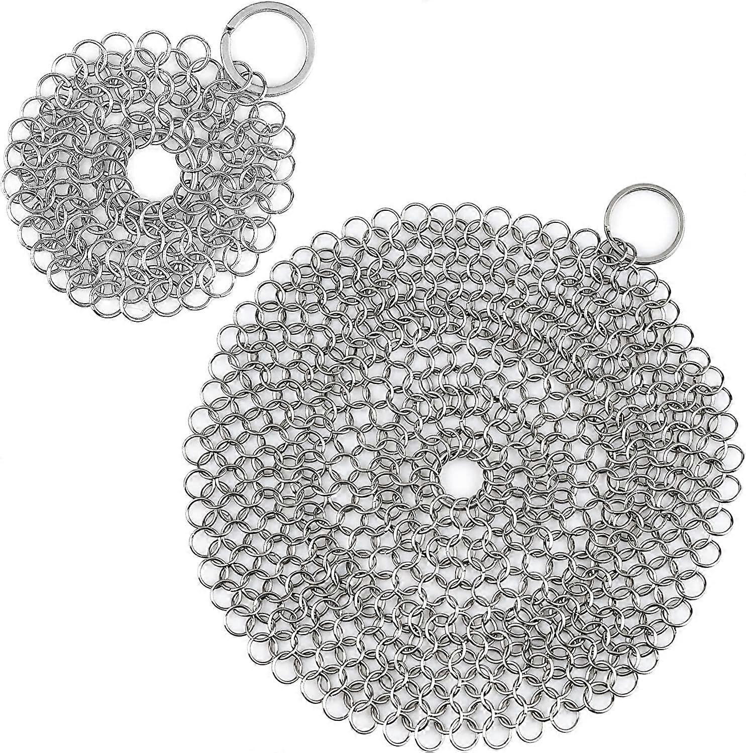 2 pcs Stainless Steel Cast Iron Cleaner Pot Brush 4 inch, 8 inch