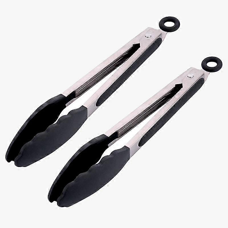 2 Pcs Kitchen Cooking 7 inches Food Tongs Stainless Steel With Silicone Heads