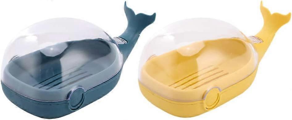 2 Pcs Creative Whale Shape Transparent Box Drain Flip Lid Soap Dish