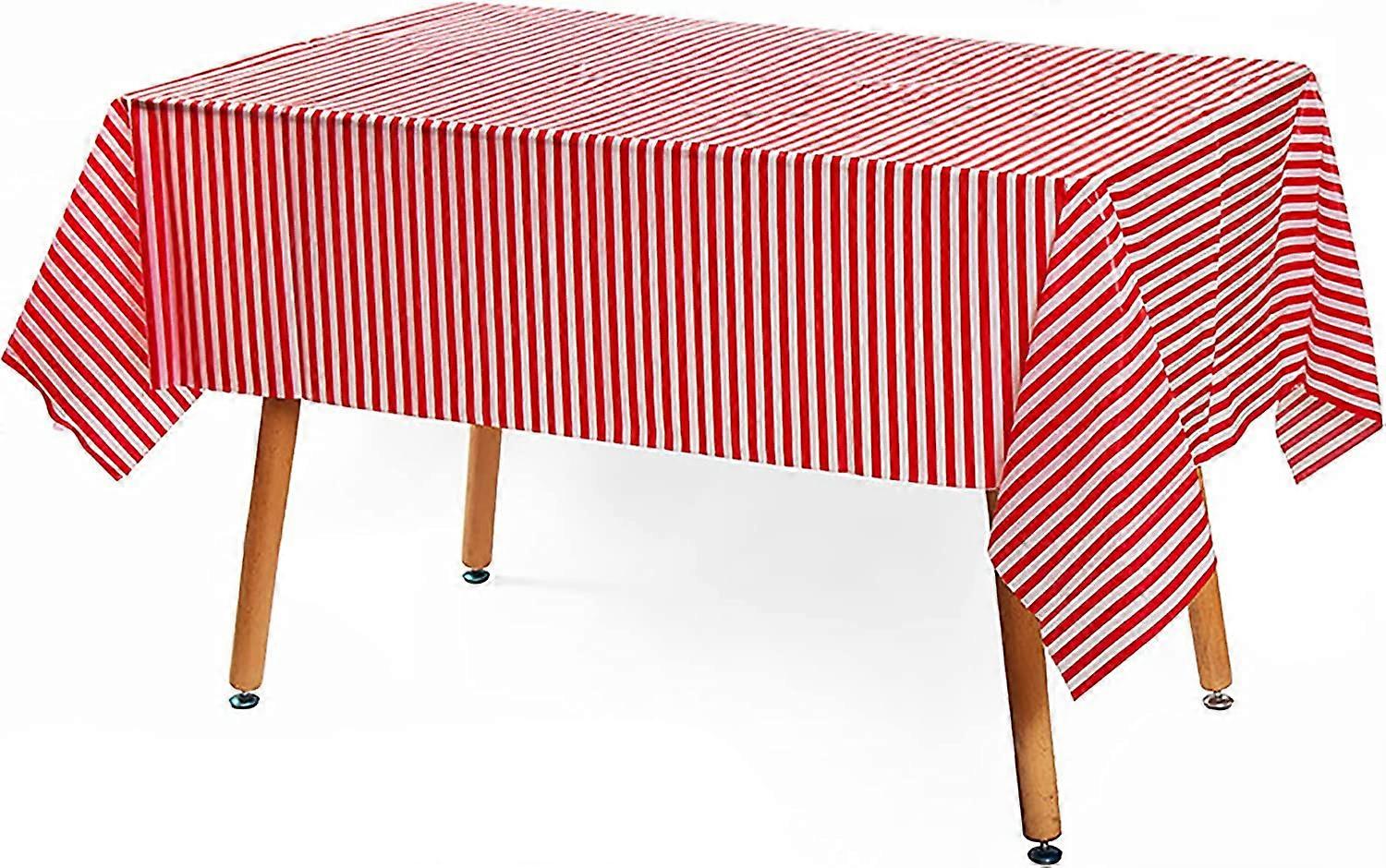 2 Pcs Disposable Red White Stripe Plastic Picnic Tablecloth 108 Inch x 54 Inch