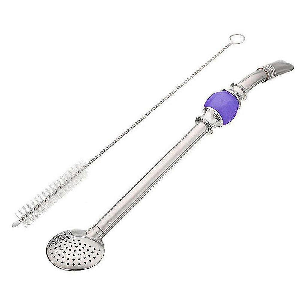 2 Pcs Yerba Mate Bombilla Gourd Drinking Filter Straw Stainless Steel Removable Filter Head With Cleaning Brushes(Purple)
