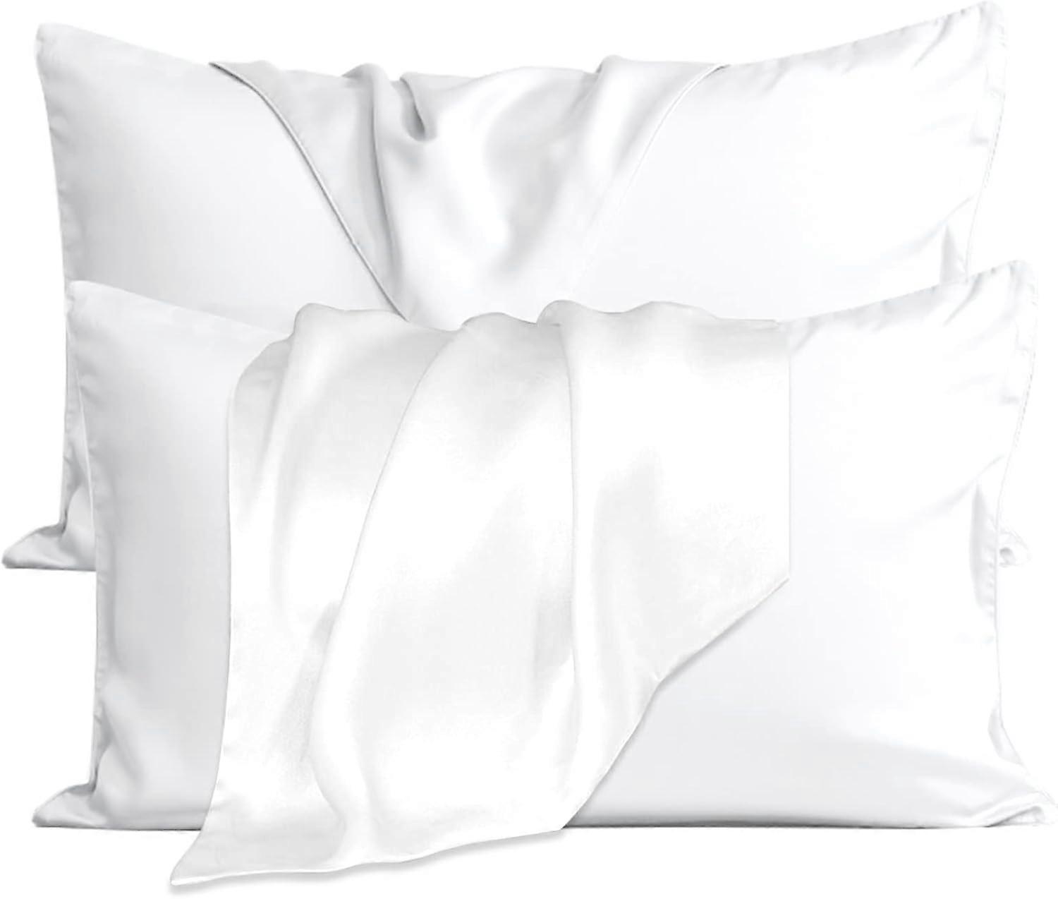 2 Pieces 50x75cm Silk Pillowcase for Hair and Sided Zippered Pillow Cover (White) without Core