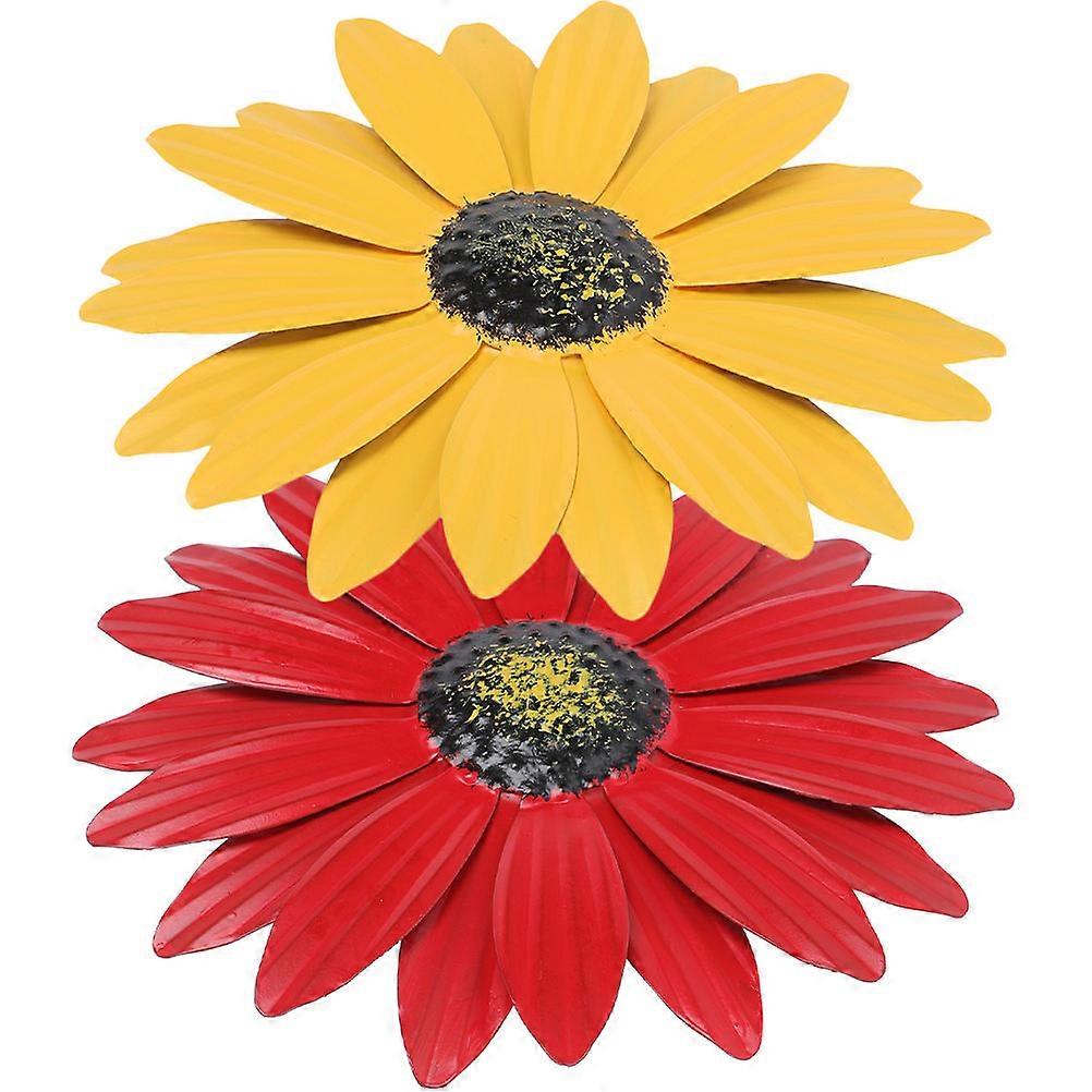 2Pcs Iron Flower Wall Decor Daisy Shape Indoor Outdoor Hanging Ornaments Assorted Color for Home Decor