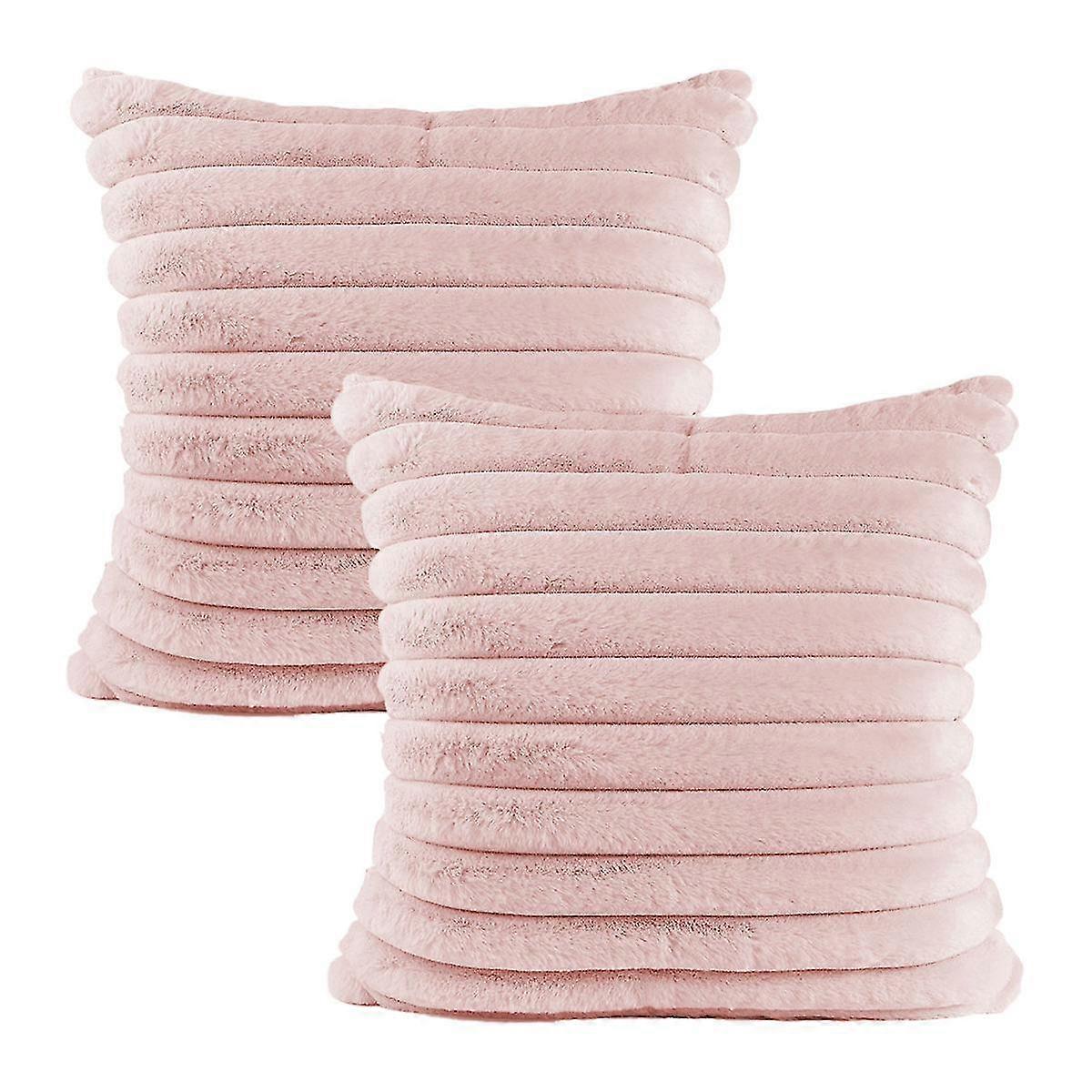 2-piece Double Sided Faux Fur Plush Decoration Embrace Pillowcase Sofa Sofa Bedroom With Fuzzy Stripes Soft Pillowcase Cushion Cover,pink