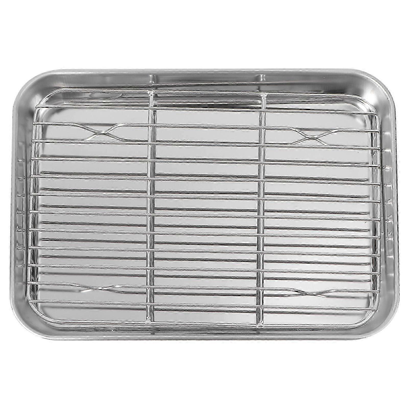 2 Pieces One Set Rectangular Baking Tray Draining Oil with Grid Rack Stainless Steel Baking Pan Sheet with Removable Cooling Rack (23x17x2.5 cm)