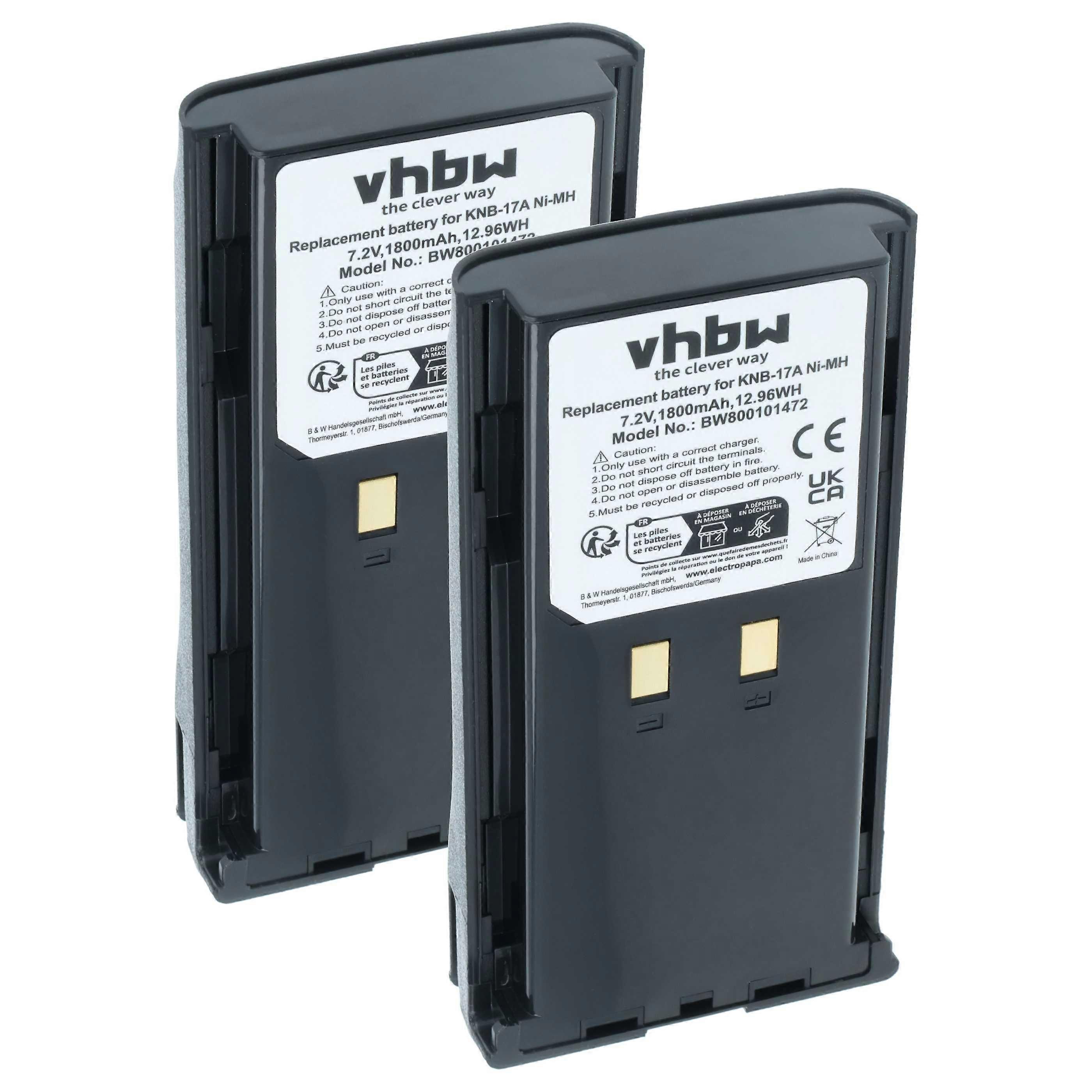 vhbw 2x Akku kompatibel mit Kenwood TK-190, TK-180, TK-380, TK-290, TK-280, TK-385, TK-290 FuG 11b Funkgerät, Walkie Talkie (1800 mAh, 7,2 V, NiMH)