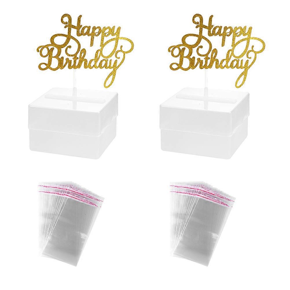 2 Set Cake Money Box Money Pulling Case with Birthday Cake Topper Decoration