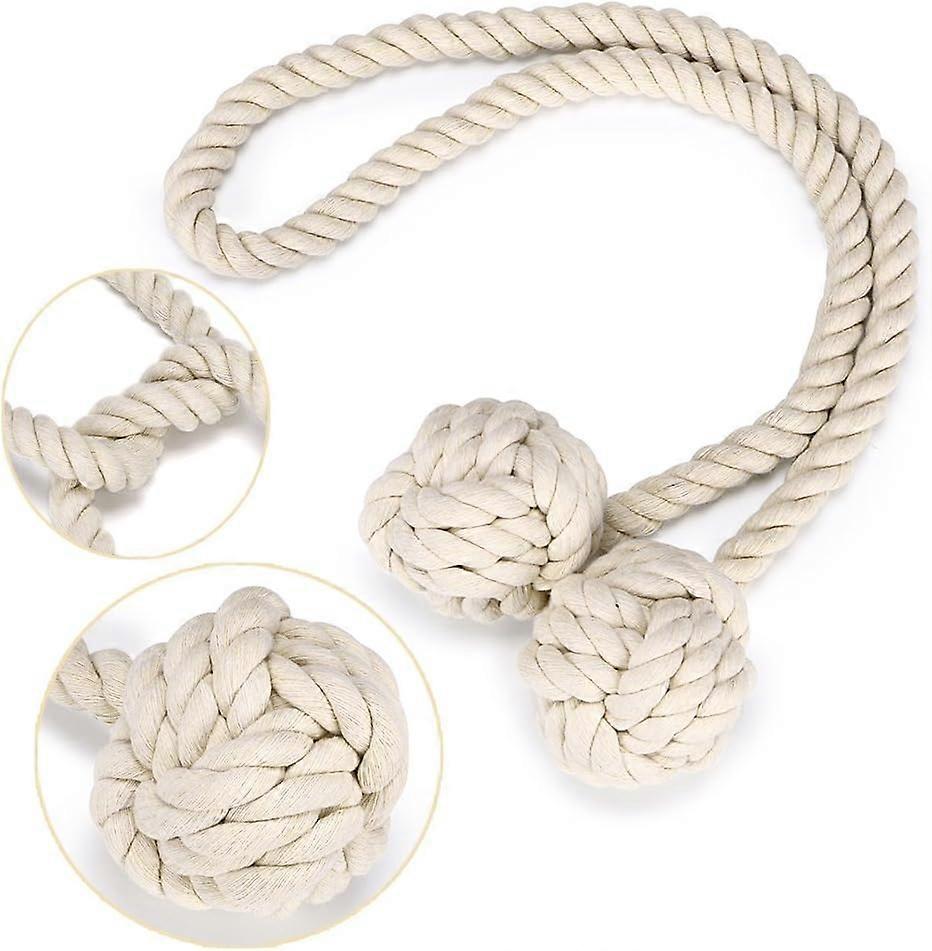 2 Curtain Tiebacks with 2 Cotton Balls, Eco-Friendly Rope Knit Cotton Yarn Curtain, Natural and Simple Style, Decoration for Room or Bedroom (Beige) B