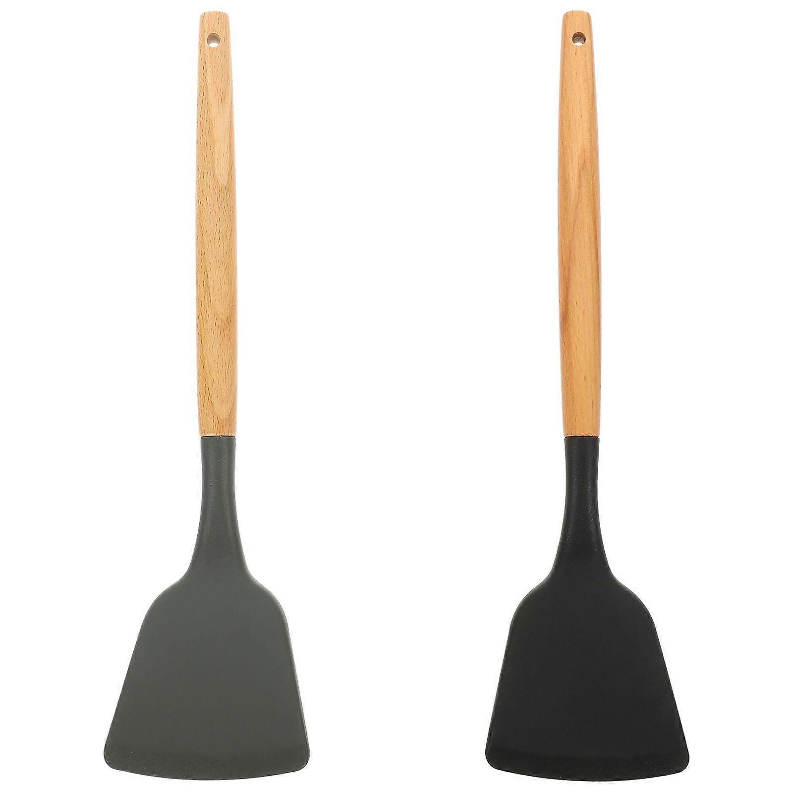 2Pcs Silicone Spatula Non Stick Kitchen Spatula Heat Resistant Wok Cooking Spatula with Wooden Handle