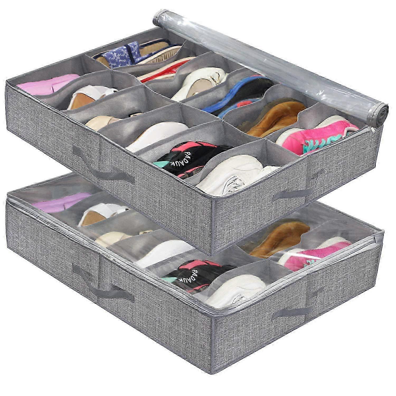 2Pcs Under Bed Shoe Storage Organizer with Clear Cover