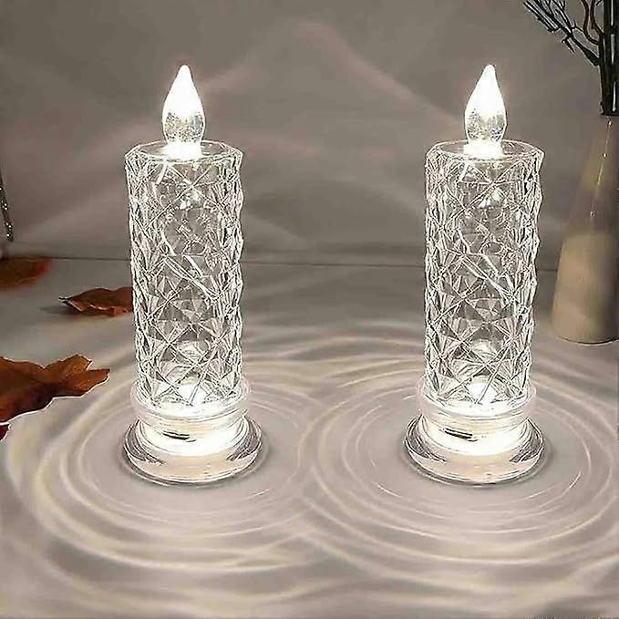 2pcs LED Crystal Candle Lights, Flameless LED Candles, Flameless Rose Shadow LED Candles, Romantic Flameless Pillar Candles