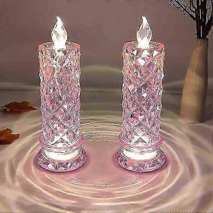 2pcs LED Crystal Candle Lights, Flameless LED Candles, Flameless Rose Shadow LED Candles, Romantic Flameless Pillar Candles