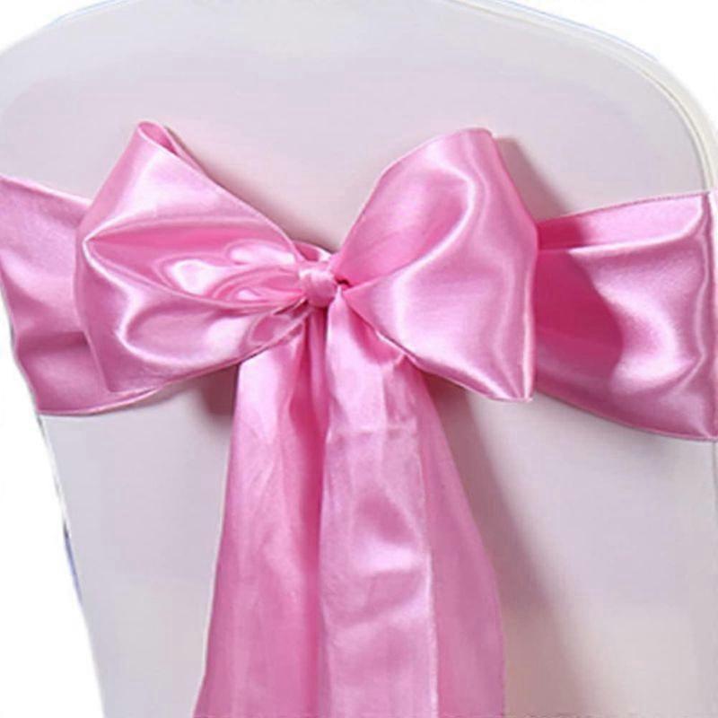 20 Pack Wedding Satin Chair Belt Pink Bow Inch Ribbon Fabric Strap With Tie Trim - Pink