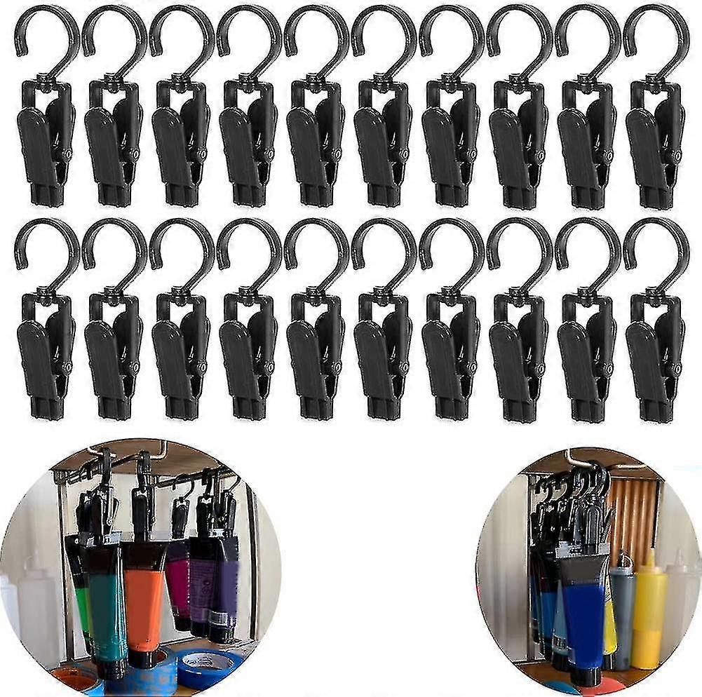 20 Pcs Super Strong Plastic Home Travel Swivel Hanging Laundry Hooks Clip - 4.3 Inches (black)