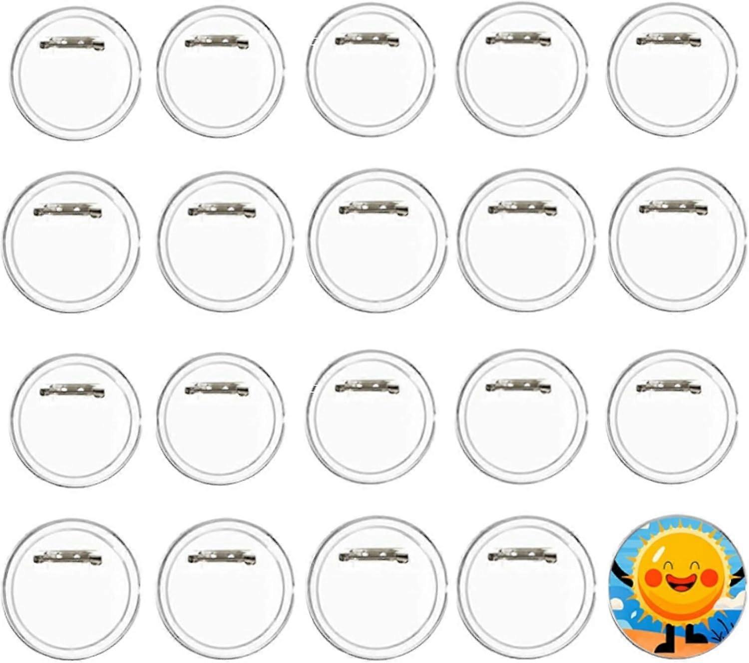 20 Pcs Transparent Acrylic Buttons, Round Chest Badge with Pins, Perfect for Making DIY Craft Items and Homemade Photo Badges. (Transparent)