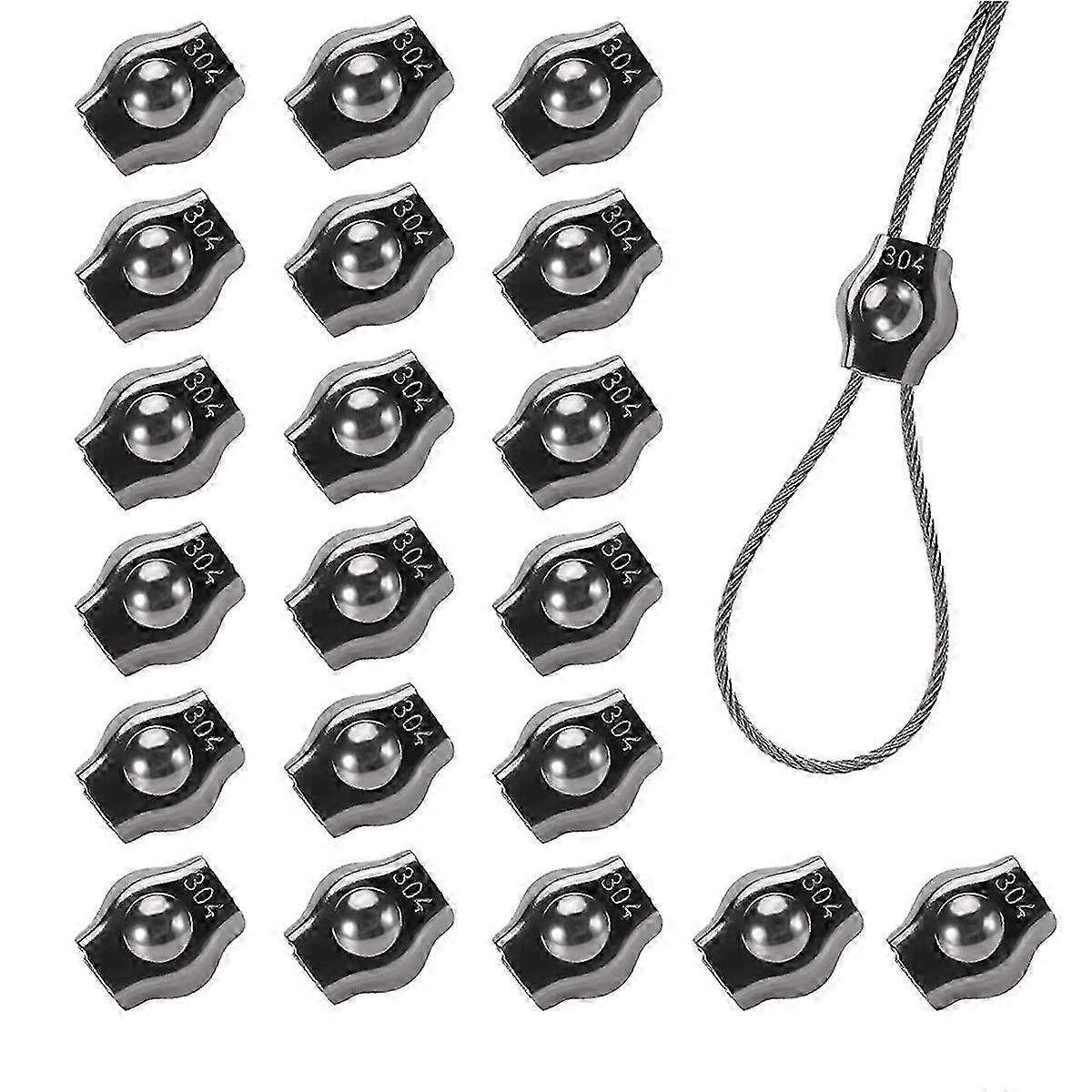 <p>Premium Quality: The cable clamps are made of stainless steel, ensuring durability with no burrs, waterproof and rust-proof features for long-lasting use.</p> <p>M4 Size: Each 5\/32 cable clamp is designed specifically for 1\/8Inch-5\/32Inch (3mm-4mm) diameter wire cable\/stainless steel cable\/wire rope\/plastic covered cable. Verify your wire size for the best fit before purchasing.</p> <p>Enhanced Safety: The wire clamps for cables are safe to use. The inner wall of these wire clamps for cables features an anti-slip groove, which increases friction and effectively prevents cable slippage during use.</p> <p>Package Includes: 20 Pcs M4 single bolt wire rope clips. Size: 20 x 18 x 17mm\/0.78 x 0.7 x 0.67Inch(LxWxT). Weight:214g. The small cable clamps are suitable for use in 1\/8inch-3\/16inch diameter wire rope or cables.</p> <p>Versatile Applications: The stainless steel cable clamps are used for steel rope tightening and are widely applied in industry or home improvements like tent rope, cloth line, railing cable tightening, making laundry lines, anchoring fitness equipment, and other holiday decorative lights endless applications.</p> <p>Colour:Silver</p> <p>Material:Stainless steel</p> <p>Package Contents:</p> <p>20 * Wire Rope Cable Clip</p> <p>Only the above package content, other products are not included.</p> <p>Note: Light reflection and different displays may cause the color of the item in the picture a little different from the real thing. The measurement allowed error is +\/- 1-3cm.</p>