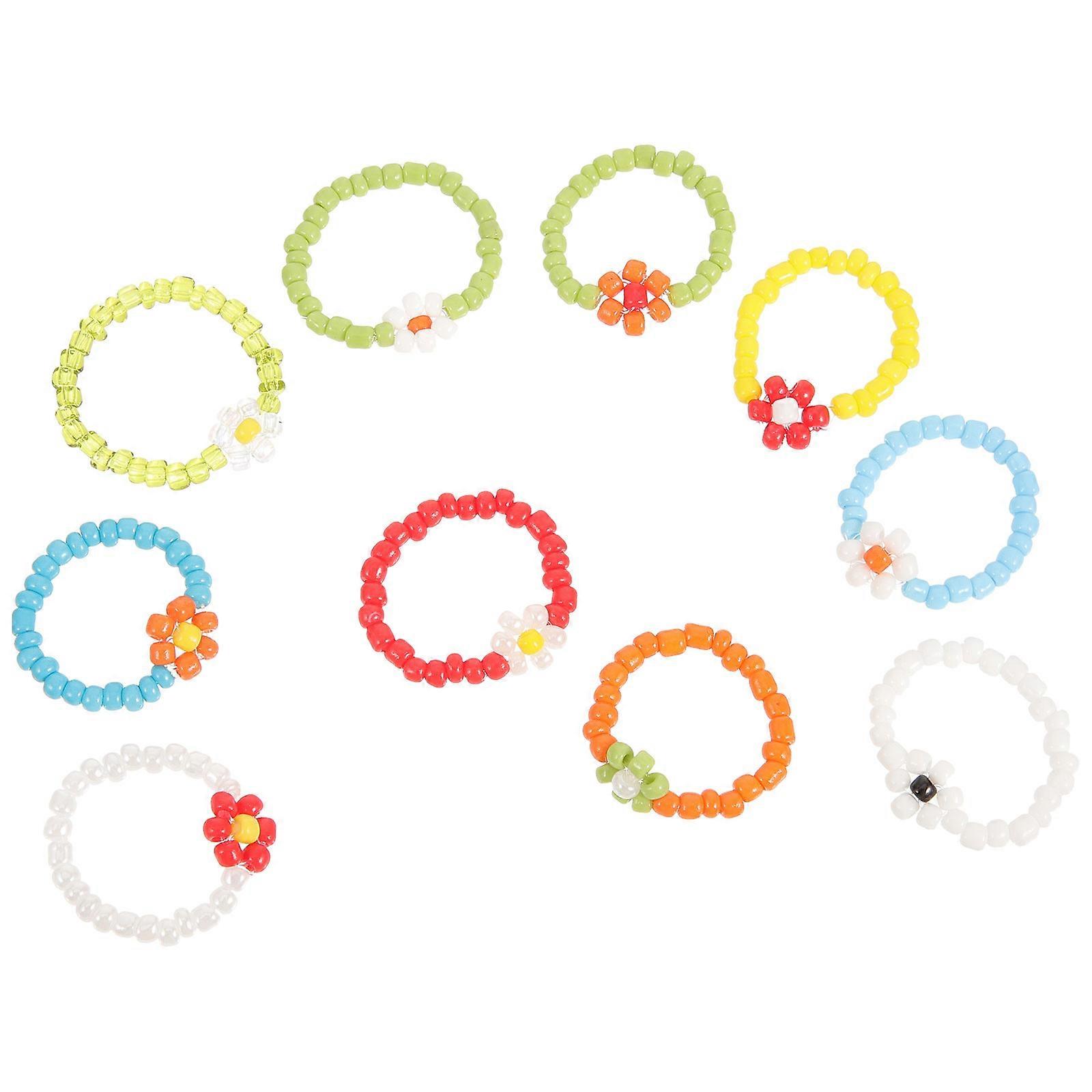 20Pcs Beaded Rings for Women Cute Flower Finger Rings Assorted Color