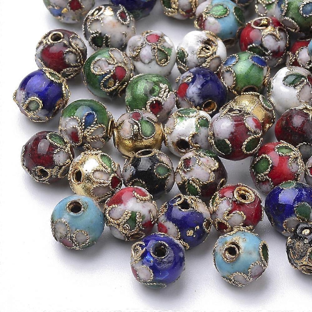 20pc Handmade Cloisonne Beads Round Mixed Color Round 8mm hole: about 2mm