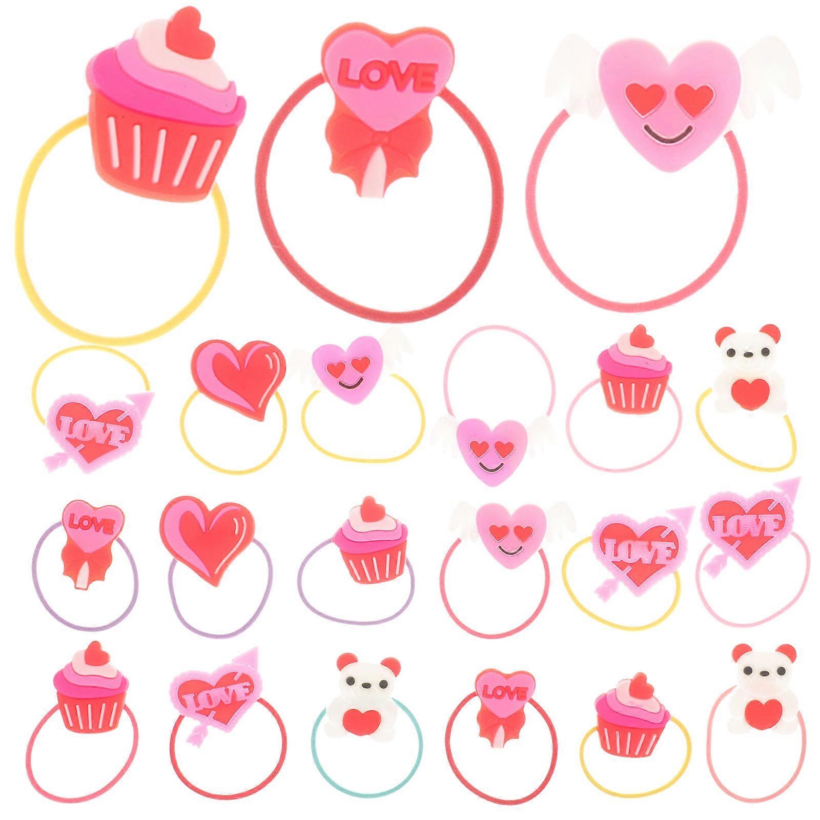 20Pcs Valentine Themed Hair Elastic Bands Ponytail Holders For Girls Comfortable To Wear Perfect For School Party Festival And Celebrations