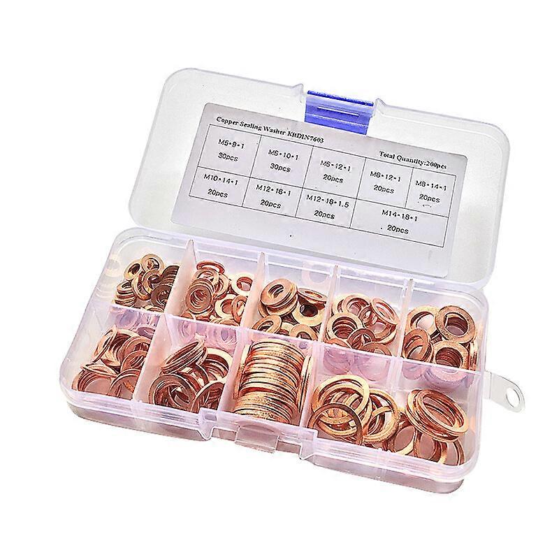 200 Pcs Copper Flat Ring Oil Seal Washer Gaskets Set for Car Accessories