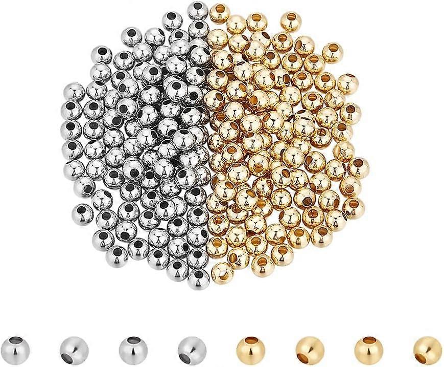 200Pcs 2 Colors 304 Stainless Steel Beads 5mm Round Seamed Spacer Beads Loose Metal Beads Smooth Beads for Necklaces Bracelets Jewelry Making 2mm Hole