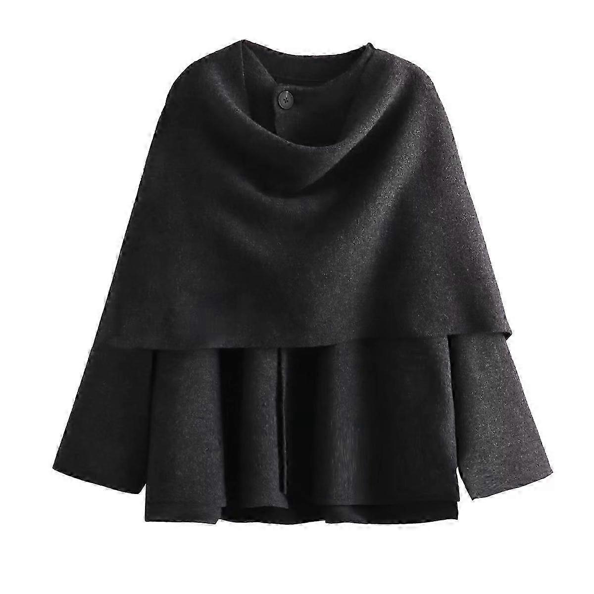 2023 New Women's Solid Color With Asymmetric Scarf Short Knitted Long-sleeved Jacket