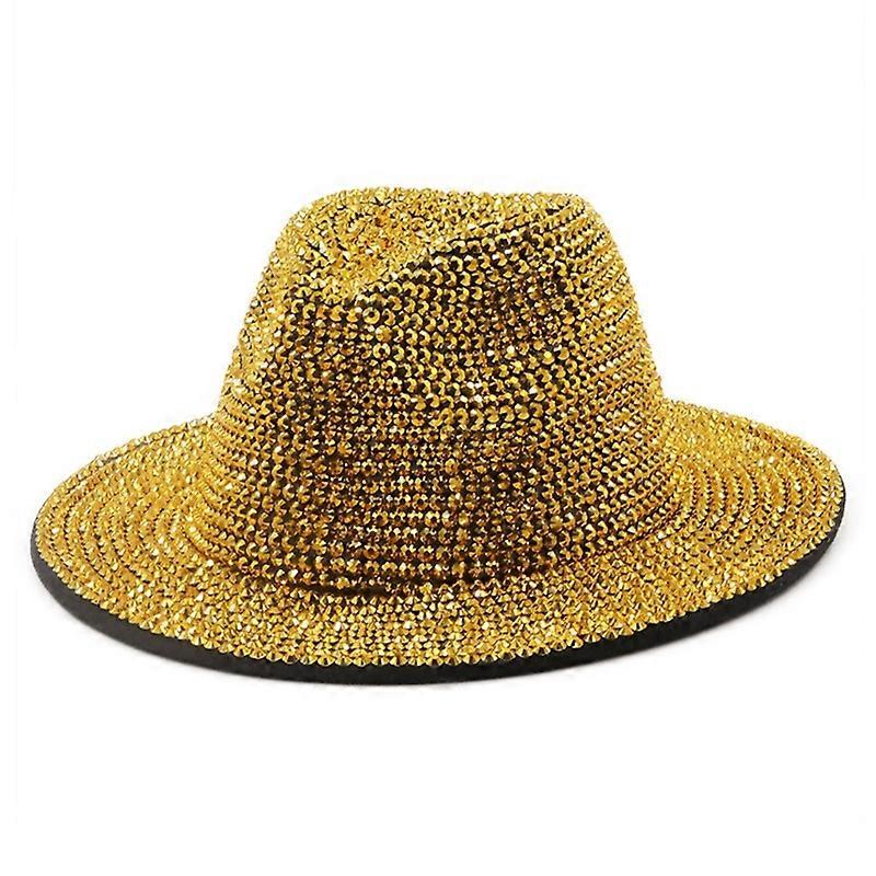 2023 New Women Bling Fedora Hat Simple Wide Brim Felt Panama With Full Diamond Adjustable Jazz Hats Dropshipping