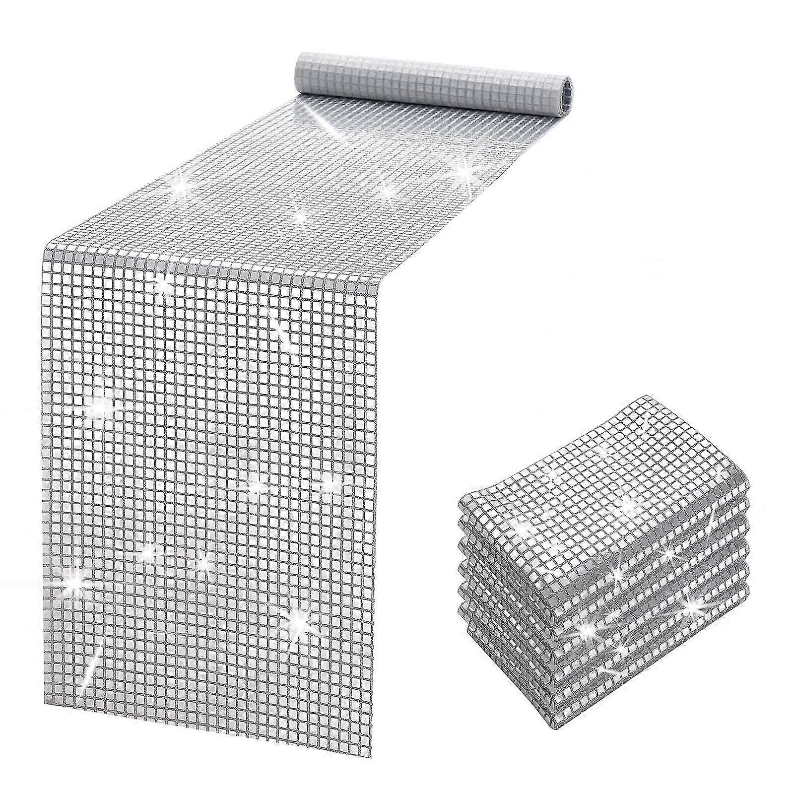 2025 6 Pack Silver Mirror Sequin Disco Ball Table Runners for Birthday 12x72 Inches