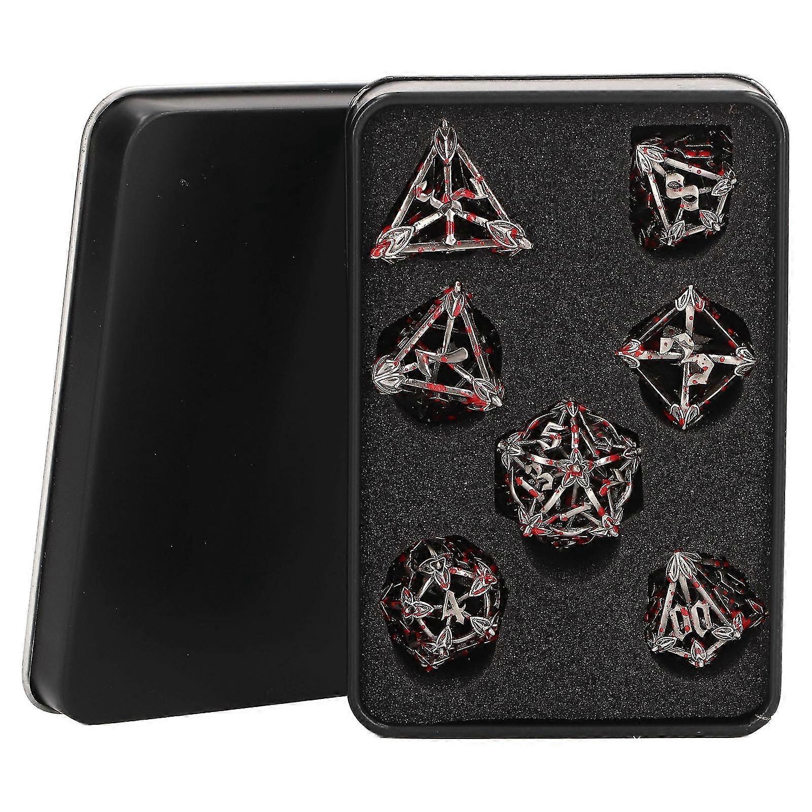 2025 7Pcs Metal Dice Set Hollow Polyhedral Dice Sturdy Multipurpose for Board Role Playing Games White Gold