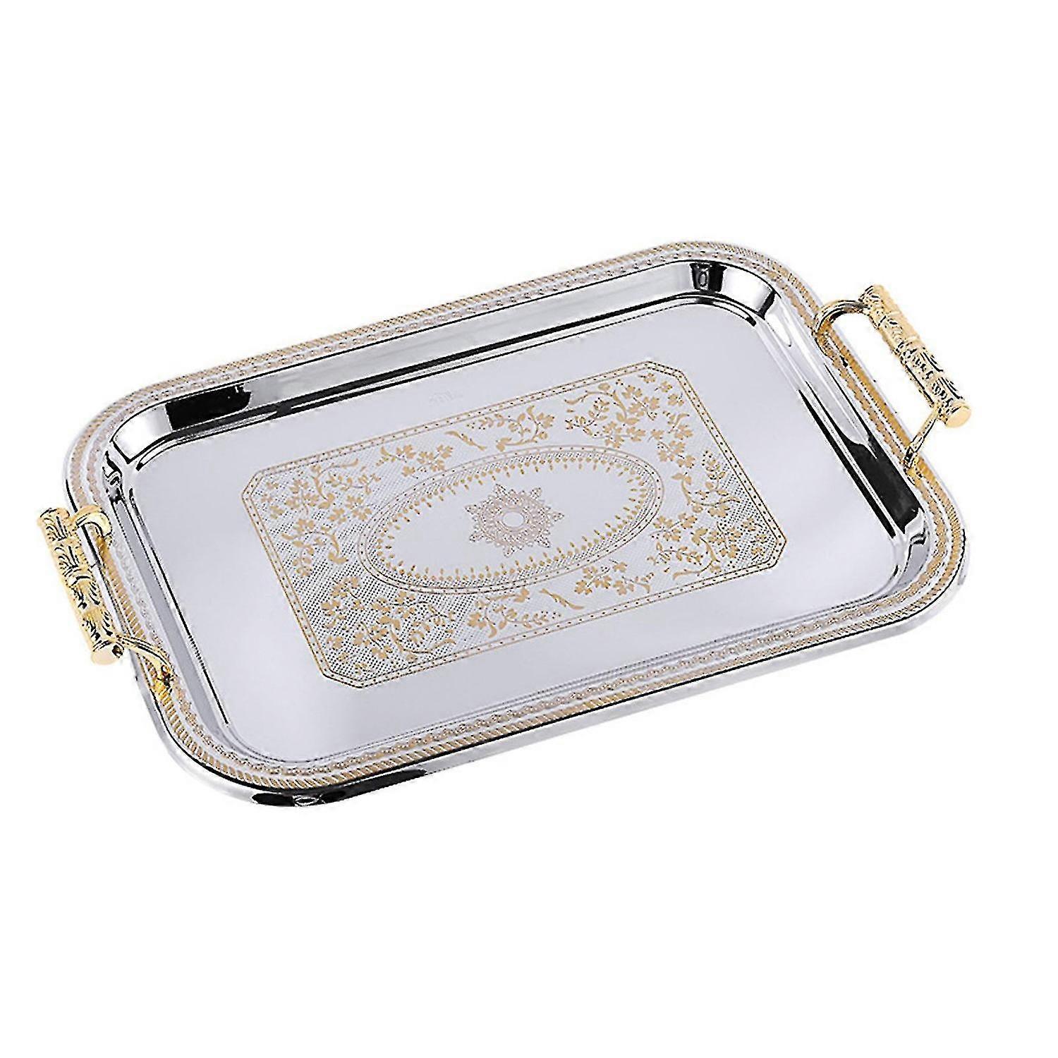 2025 Nordic Stainless Steel Serving Tray With Handles Elegant Rectangular Coffee Bar Food Holder Dessert