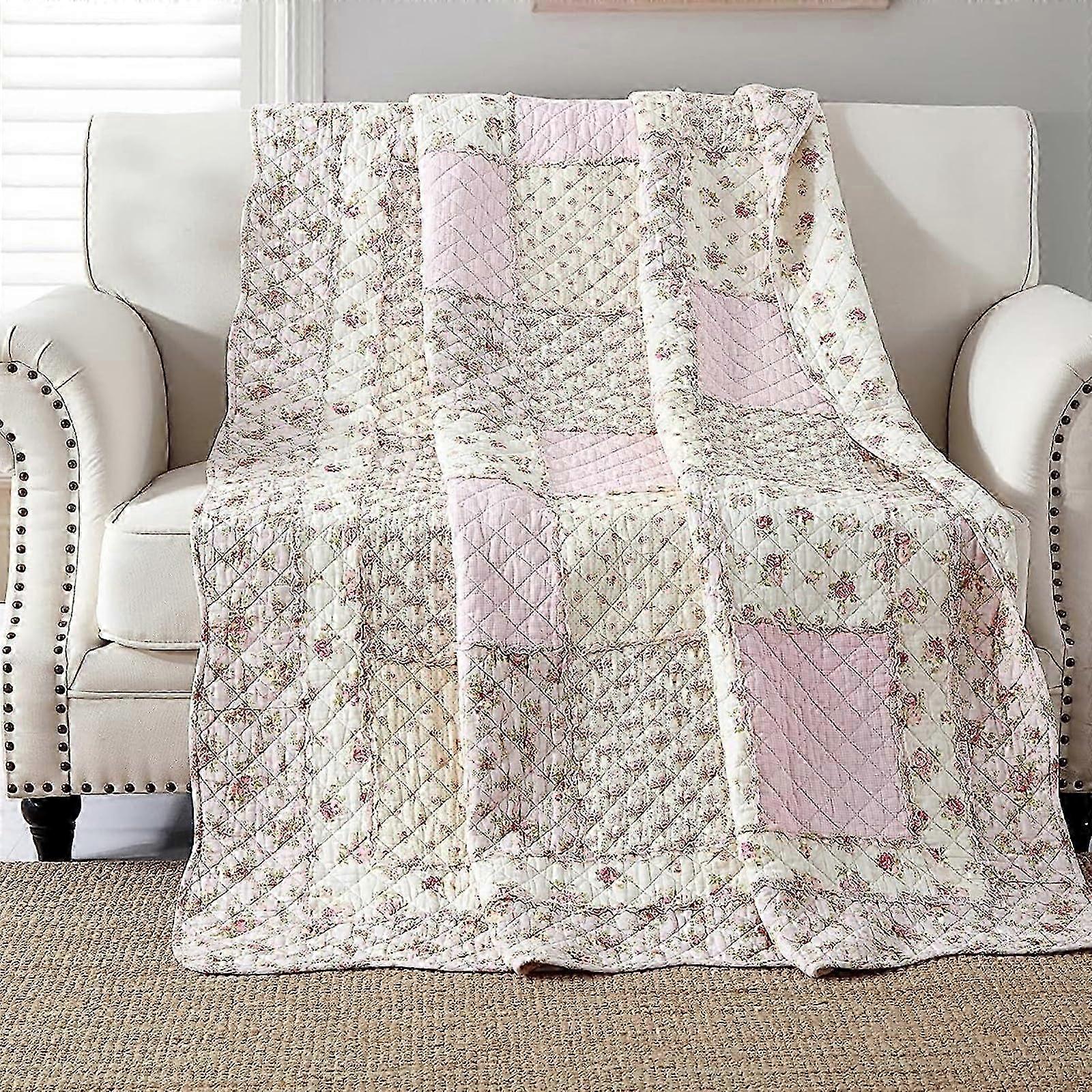 2025 Patchwork bedspread for single bed, cotton patchwork blanket, pink for girls, quilted sofa throw, bed throw, 150 x 200 cm with floral pattern