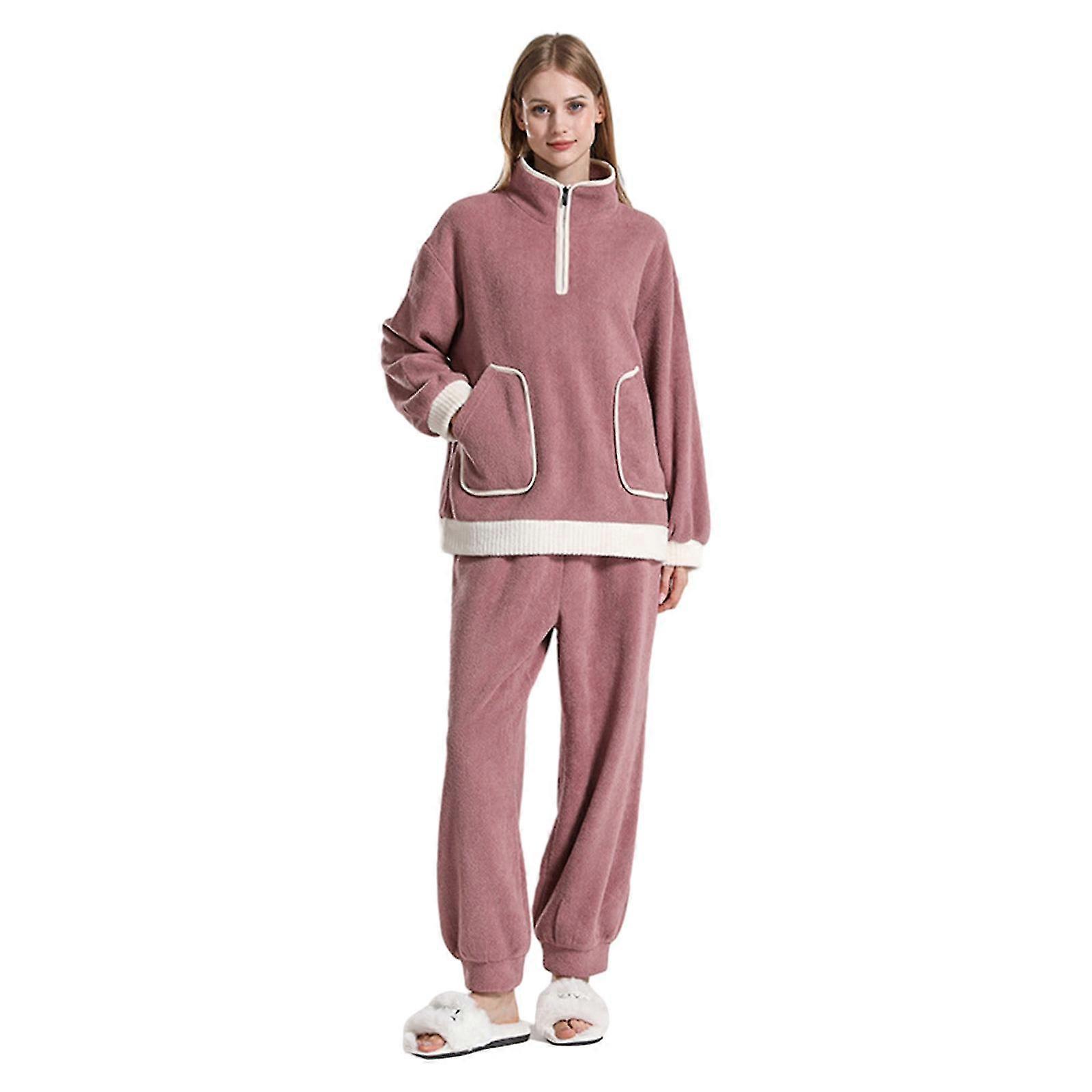 2025 Womens Fuzzy Pajamas Set Fleece Zipper Pullover Pants Casual Fuzzy Loose Plush Sleepwear 2Piece Pj Set Warm Loungewear rose Red XL