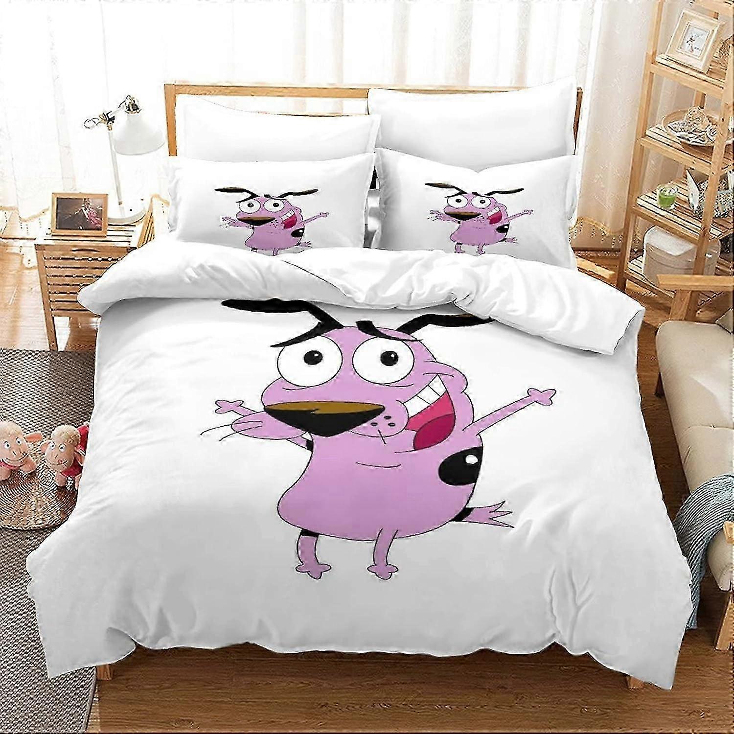 2025 Courage The Cowardly Dog Cartoon Dog Luxury Duvet Cover with Pillowcases with Quilt Cover Bedding Set for Adults and Teens Double 135*200 CM