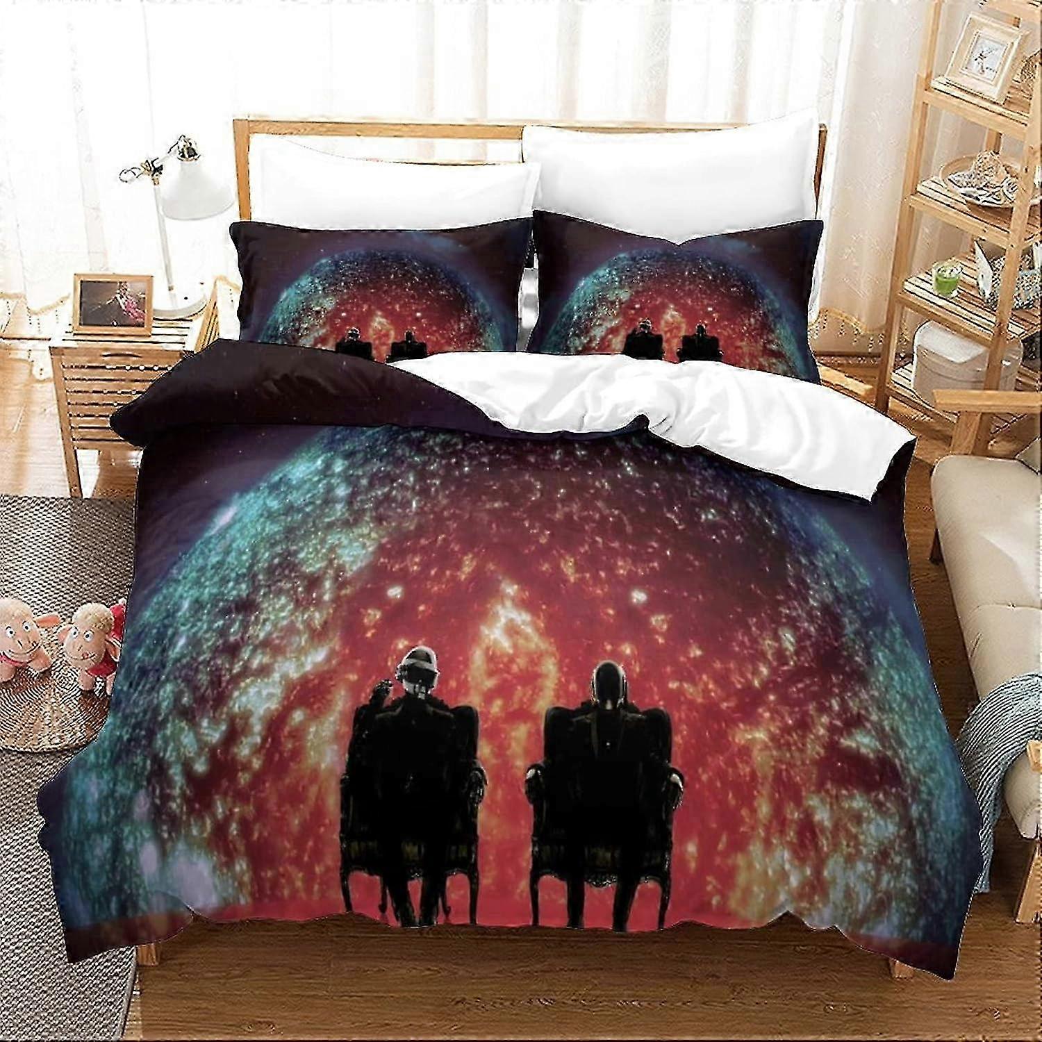 2025 Daft Punk D Music Effect Printed Duvet Cover Set with Pillowcases,Microfiber Electronica Comforter Bedding Set King 135*200 CM
