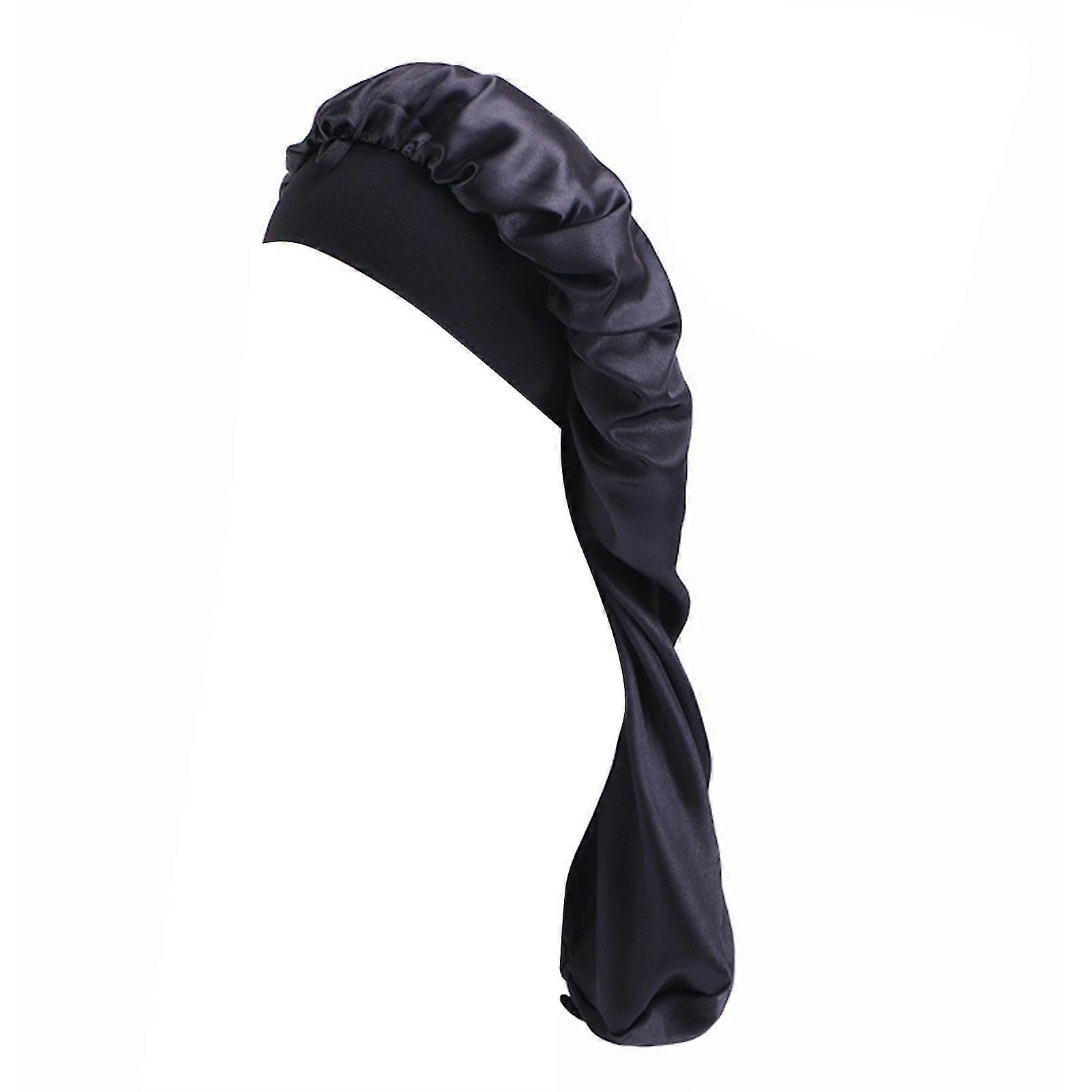2025 Faux Satin Wide Button Hair Bonnet Solid Color High Elastic Women Sleep Cap Hair Care